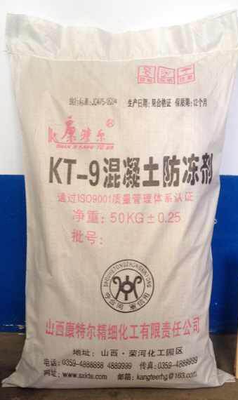 KT-9混凝土防凍劑是由早強和防凍組份,復(fù)合減水和引氣組份組成的一種復(fù)合型防凍劑,該防凍劑具有摻量低、早期強度高、不含氯鹽、阻止鋼筋銹蝕、使用方便可靠、防凍效果顯著等特點,可廣泛用于工業(yè)及民用建筑的各種混凝土工程?;炷林袚郊颖井a(chǎn)品,可在日最低溫度-10℃以上進行現(xiàn)澆混凝土冬季施工,不必采取加熱養(yǎng)護措施,即可使新拌混凝土免遭凍害,在負(fù)溫下凝結(jié)硬化,并在規(guī)定時間內(nèi)達到預(yù)期強度。